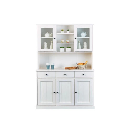 Dieser praktische Küchenschrank bietet nicht nur Stauraum, er macht auch optisch einiges her! In diesem massivholz Küchenschrank im Landhaus-Stil können Sie problemlos Ihr Geschirr und weitere Küchenutensilien ansehnlich verstauen. Bei Westerland 56.1 stimmen Funktion und Optik. Der Schrank bietet nicht nur zusätzlichen Platz, in das richtige Licht gerückt wird er zum Wahrhaften Hingucker! Sichtbare Regalfächer können genutzt werden um Dekorative Gegenstände sichtbar zu Platzieren. Dadurch entstehen viele Möglichkeiten farbliche Akzente zu setzten. Der Schrank verfügt über 3 Schubladen, 3 Fachböden und insgesamt 5 Türen. Das Massivholz wurde mit weißem Lack grundiert. Der widerstandsfähige Lack ist besonders pflegeleicht und wasserabweisend. Natürliche Holzmaserungen bleiben durch die leicht transparente Lackierung erhalten. Die Grundlage für ein robustes und langlebiges Möbelstück beginnt mit der Auswahl der Materialien. Für die Fertigung von Westerland 56.1 werden stets Materialien nach strengen Anforderungen ausgewählt. Das Ergebnis ist ein langlebiges und robustes Holzerzeugnis. Westerland 56. Aufgebautes Maß (BxTxH): 131 x 45 x 191 cm.