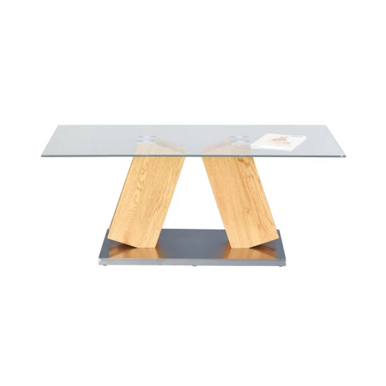 Der Couchtisch Onan skandinavisch angehaucht verleiht Ihrem Wohnzimmer eine warme, wohnliche Atmosphäre. Die Kombination aus robustem MDF, Wildeiche (Nachbildung), Edelstahl und Sicherheitsglas macht Onan so schnell keiner nach! Die Klarglasplatte steht auf 2 Beinen in Wildeiche (Nachbildung). Die untere Platte in Edelstahl verleiht dem Ganzen einen n Touch. Zusätzlich Sie kann als Ablagefläche genutzt werden. Der natürliche Holzton der Beine vermitteln ein warmes, heimisches Gefühl.