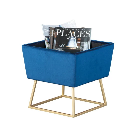 Der edle Sitzhocker mit wertigem Samt Bezug. Durch seine rechteckige Form hebt er sich von anderen Sitzhockern ab. Die Sitzfläche ist abnehmbar und darunter befindet sich Stauraum der befüllt werden möchte. Besonders die Kombination mit dem Goldfarbenem Metallgestell und dem Samtbezug unterstreicht die Eleganz des Sitzhockers. Wahlweise in blau oder schwarz erhältlich.