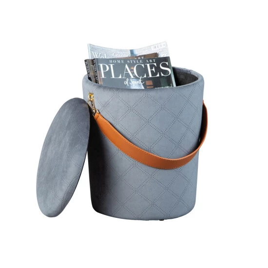 Der Sitzhocker überzeugt besonders mit seinem eleganten Design. Der perforierte Samtbezug ergänzt hervorragend die dezente Form des Sitzhockers. In punkto Optik überzeugt der Design Hocker auf ganzer Linie aber auch funktionell hat er einiges zu bieten! Unter dem abnehmbaren Deckel befindet sich Stauraum. Der Gurt aus Kunstleder ist nicht nur praktisch, er sieht schick aus und rundet das Gesamtkonzept ab. Der bequeme Sitzhocker ist in zwei modernen Farben erhältlich: altrosa und hellgrau.