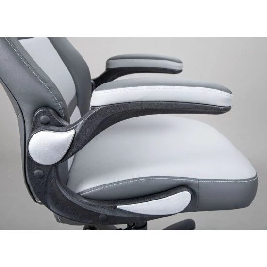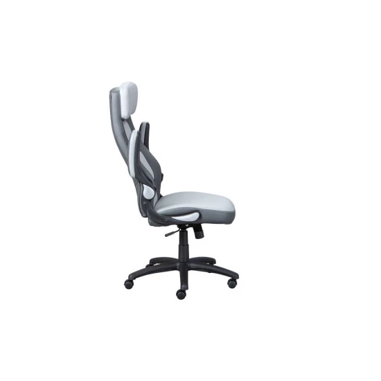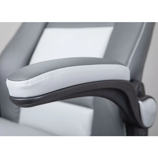 Der Drehstuhl Elexo ist überaus elegant. Ein freundliches stilvolles Hellgrau in Kombination mit frischem Weiß verleiht dem Stuhl eine wunderbare moderne Optik. Natürlich kann der Stuhl noch viel mehr, als nur schick aussehen. Er lässt sich zwischen 119 und 128.5 cm verstellen, hat eine verstellbare, gepolsterte Kopflehne und ebenfalls gepolsterte Armlehnen. Und mit einer Tragkraft von 115 Kilogramm ist der Stuhl einfach ideal für Erwachsende oder große Heranwachsende.