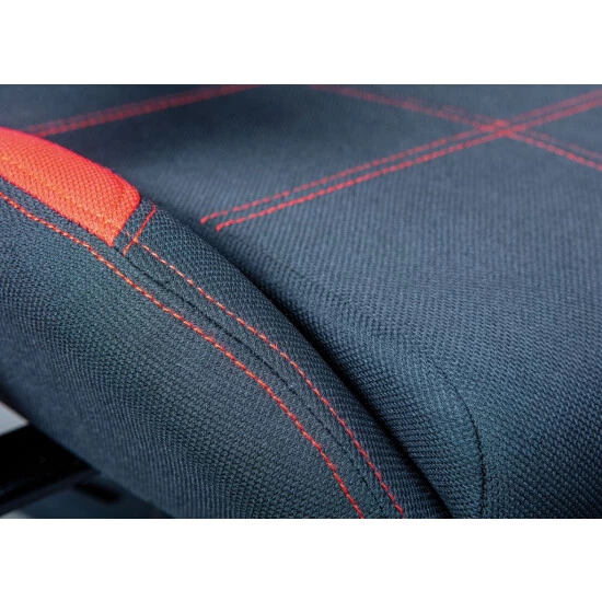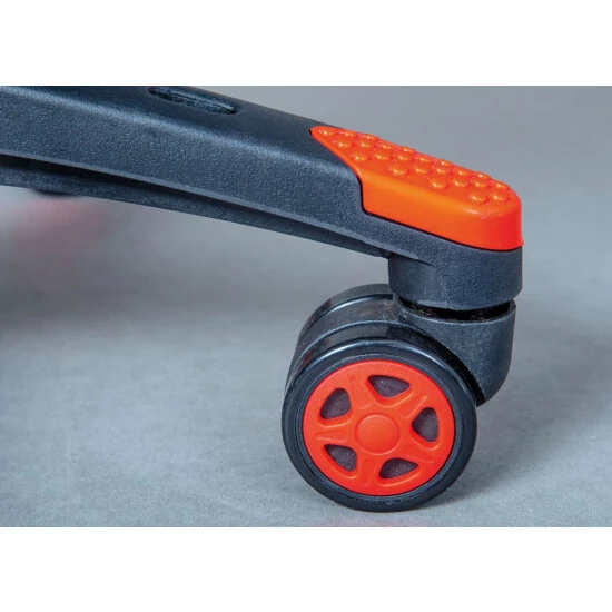 Sie können diesen Bürostuhl mit bis zu 140 kg belasten bei größtmöglicher Sicherheit durch lastabhängig gebremste Sicherheitsrollen, die passend zum Design der Sitzfläche ebenfalls in Schwarzrot gehalten sind.