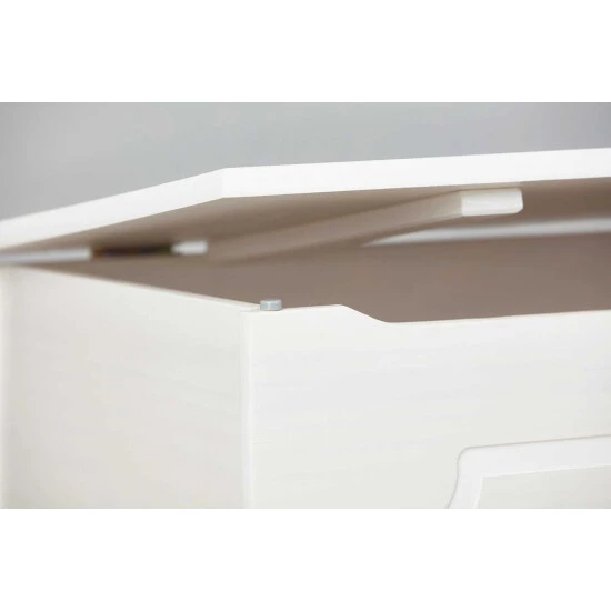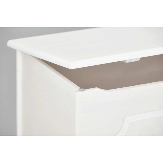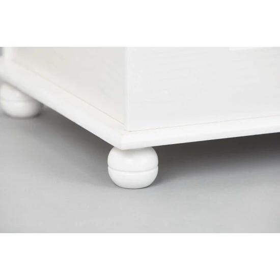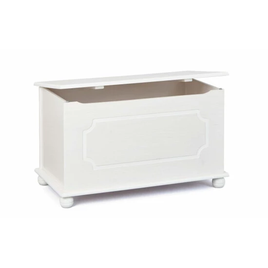 Emel ist eine praktische Massivholztruhe für das Schlafzimmer. Utensilien wie Bettwäsche, Kissen oder z.B. Bettdecken können einfach und schnell untergebracht werden. Die Kiste besteht aus weiß lackiertem Massivholz (Weihrauchkiefer). Die Lackierung wurde so aufgetragen, dass die einzigartigen Holzmaserungen dennoch hervorscheinen. Emel integriert sich, dank dem schlichten und zeitlosen Design in jede vorhandene Einrichtung. Emel wurde nach neusten europäischen Umweltstandards produziert.