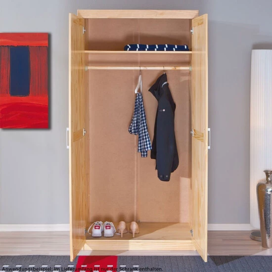 Der Leon Kleiderschrank vermittelt durch seine sichtbare Massivholz-Oberfläche ein Gefühl von Gemütlichkeit und Wärme. Der Kleiderschrank bietet viel Stauraum für Kleidung. Durch den verwendete Lackierung kommen die natürlichen Holzmaserungen des Massivholzes besonders schön zur Geltung. Der 3 türige Kleiderschrank verfügt über eine Kleiderstange und Hutablage. Hochwertige Materialien machen ihn zu einem stabilen, langlebigen Teil Ihrer Einrichtung!