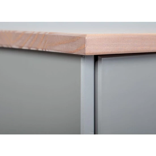 Kiefer massiv (Brasilien) in grau lackiert kombiniert mit einer Deckplatte in Sepia braun lackiert
