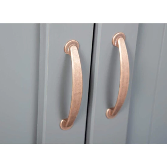 Die Oberfläche wurde so behandelt, dass Sie sich um nichts kümmern müssen, denn sie ist wasserabweisend und damit auch pflegeleicht. Als hübsche Extras kommen die farblich abgesetzten Möbelgriffe sowie die Füllungen, die in einer das Äußere aufwertenden Brettoptik gehalten sind, hinzu. Dieses Möbel ist ein Stück Nostalgie, neu interpretiert, mit allerhand praktischen Details.