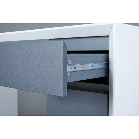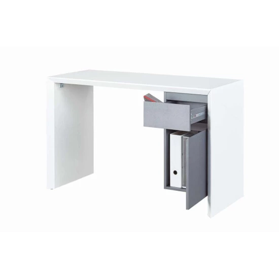 Das Design von Megara verfolgt eine klare, schlichte Linie. Aus diesem Grund fügt sich der Laptoptisch besonders gut in die vorhandene Einrichtung in jedem Homeoffice. Eine ausziehbare Schublade bietet Platz für Stifte und sonstiges. Hinter der Tür bietet Megara ein großes Ablagefach in welches zwei Ordner untergebracht werden können. Die MDF/Wabenplatte ist weiß Hochglanz melaminbeschichtet.