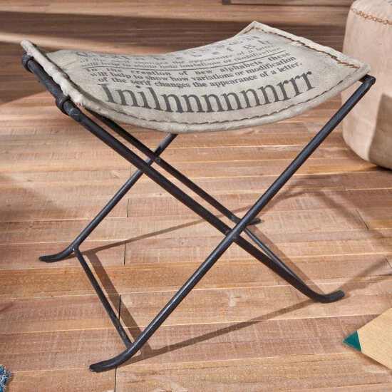 Klapphocker mit schwarzem, robustem Metallgestell. Der bequeme Schwimmsitz ist aus sehr belastbarem Canvas-Stoff (Baumwolle) mit aufgenähten Zahlen aus braunem Leder. Das robuste Gestell besteht aus einem schwarzen Metallrahmen. Alle Artikel der Serie sind Unikate. Der Hocker wird in aufwendiger Handarbeit gefertigt dadurch können Maße und Design variieren. Der Hocker im Vintage-Stil integriert sich hervorragend in vorhandene Einrichtungsstile und Ihre Gäste werden es sich auf dem Numerati gemütlich machen!